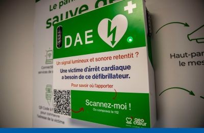 Lauréat du Concours Lépine en 2022, le dispositif Géocœur est né de l’imagination de Frédéric Leybold, infirmier en réanimation et pompier. Grâce à un panneau connecté installé au-dessus d’un défibrillateur et relié au serveur des services de secours (SAMU, pompiers), il se déclenche dès qu’un arrêt cardiaque est signalé : le boîtier clignote, émet une alerte sonore de 90 décibels et affiche un QR code permettant à tout passant d’accéder à la géolocalisation de la victime.